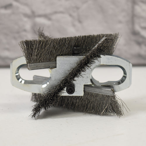 Eliminates particle build-up and fall out. Reduces rework of painted parts due to contamination. Reduces wheel and chain wear, and other costly down time expenses. Easy installation and non-sparking brush filament make this the ideal after market addition to your conveyor line.