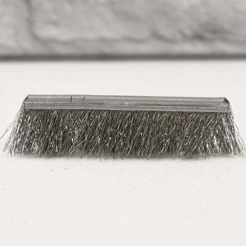 For enclosed tracks with a significant amount of build-up, we recommend you start with the stainless steel brush. After the track is cleaned a few times, a bronze brush which tends to be softer, would be used for maintenance on the track.