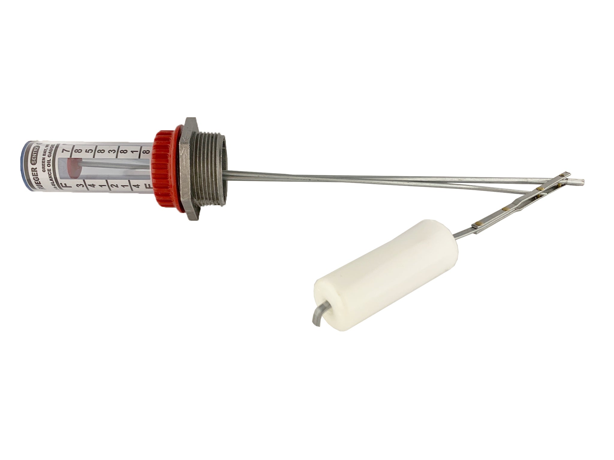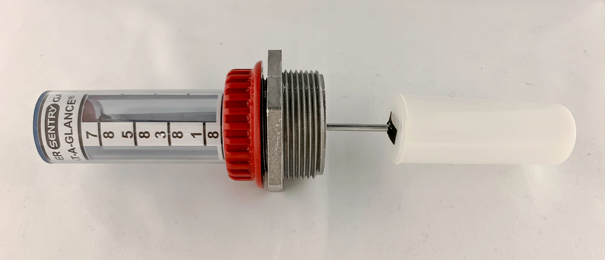 This barrel gauge comes in 3 different sizes depending on the size of your lubricant tank; 6, 12 and 65 gallon.